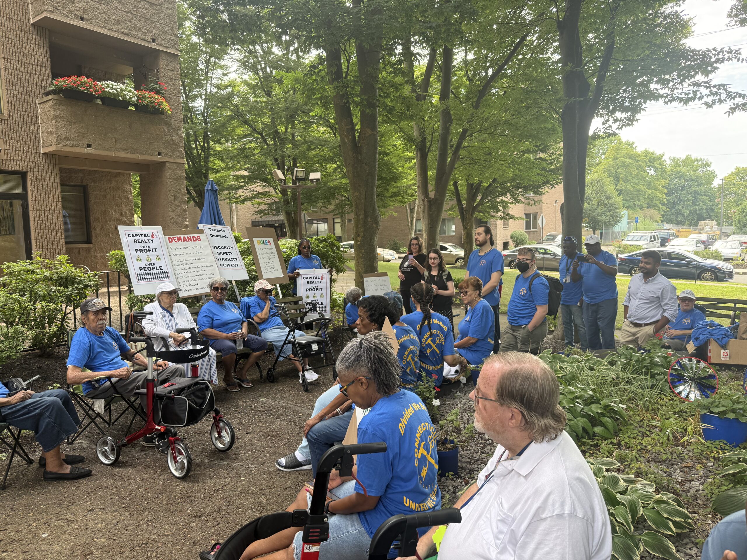 The Park Ridge Tenant Union, which represents nearly 60 percent of the 72-unit building’s residents, quickly drew political support. Connecticut’s Sen. Richard Blumenthal visited Park Ridge on Aug. 14 to endorse the union and press Capital Realty Group to meet directly with tenants. Blumenthal alleged that Capital Realty Group has chronically neglected its subsidized housing properties, leaving residents unsafe and unhealthy.
