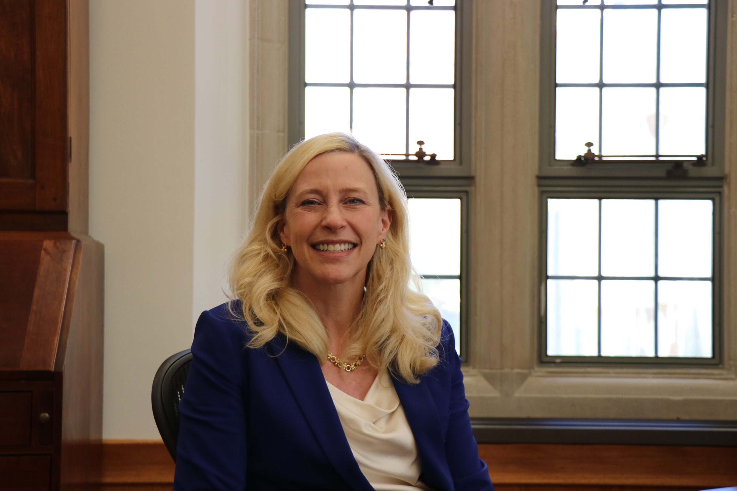 University President Maurie McInnis spoke candidly with parents on Saturday, addressing concerns about the endowment tax hike and free speech at her Family Weekend talk.
