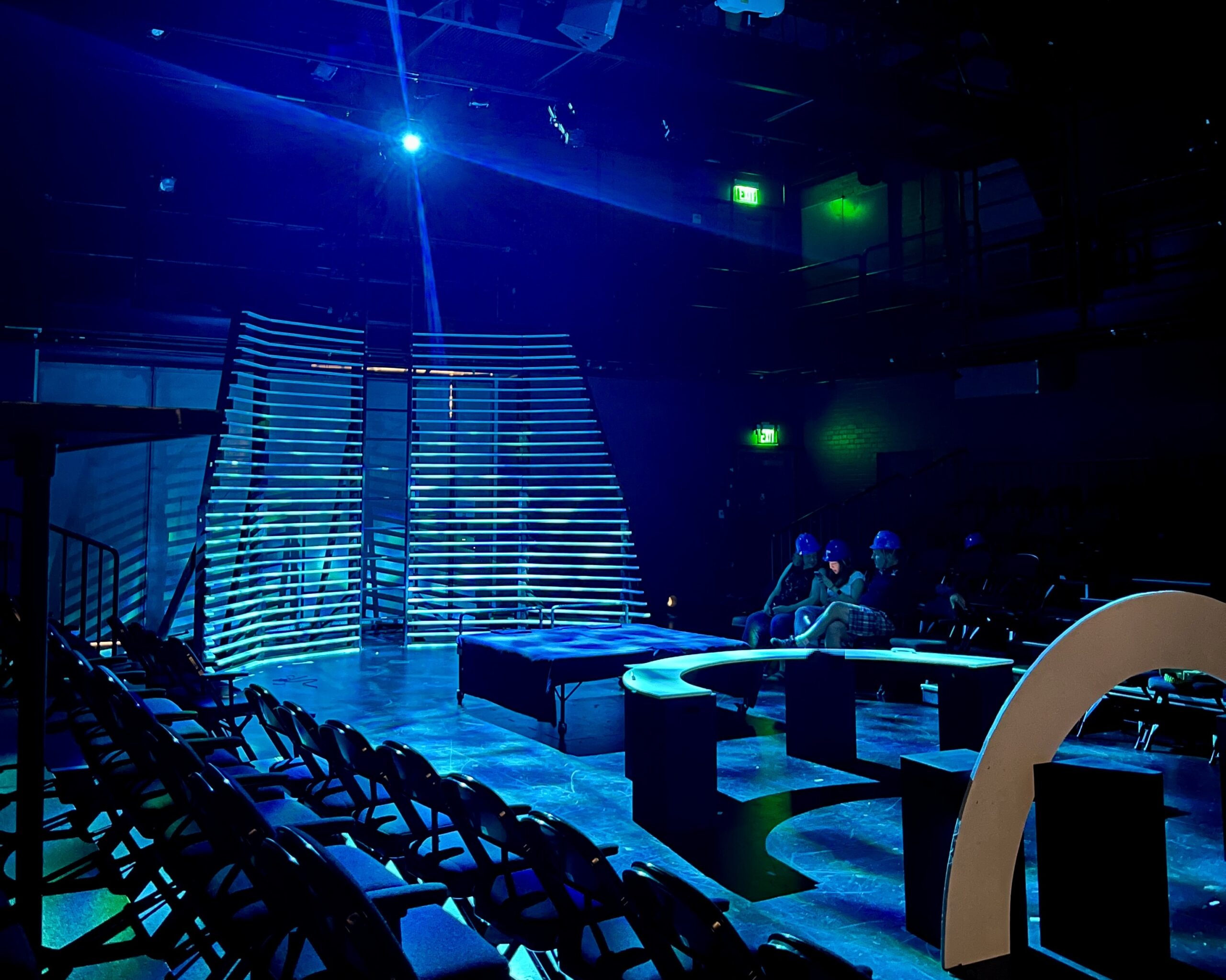 The audience is arranged in parade-style seating between the two structures to serve as a physical manifestation of the journey described in the narrative. Leela begins the show trapped in her family’s apartment, but is led to the Exclamation Point lighthouse throughout the course of the play.