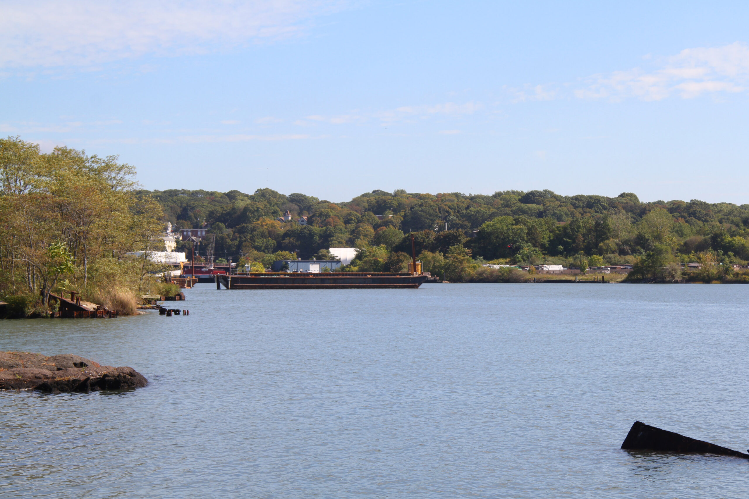 The Quinnipiac River flows into New Haven Harbor east of downtown New Haven.