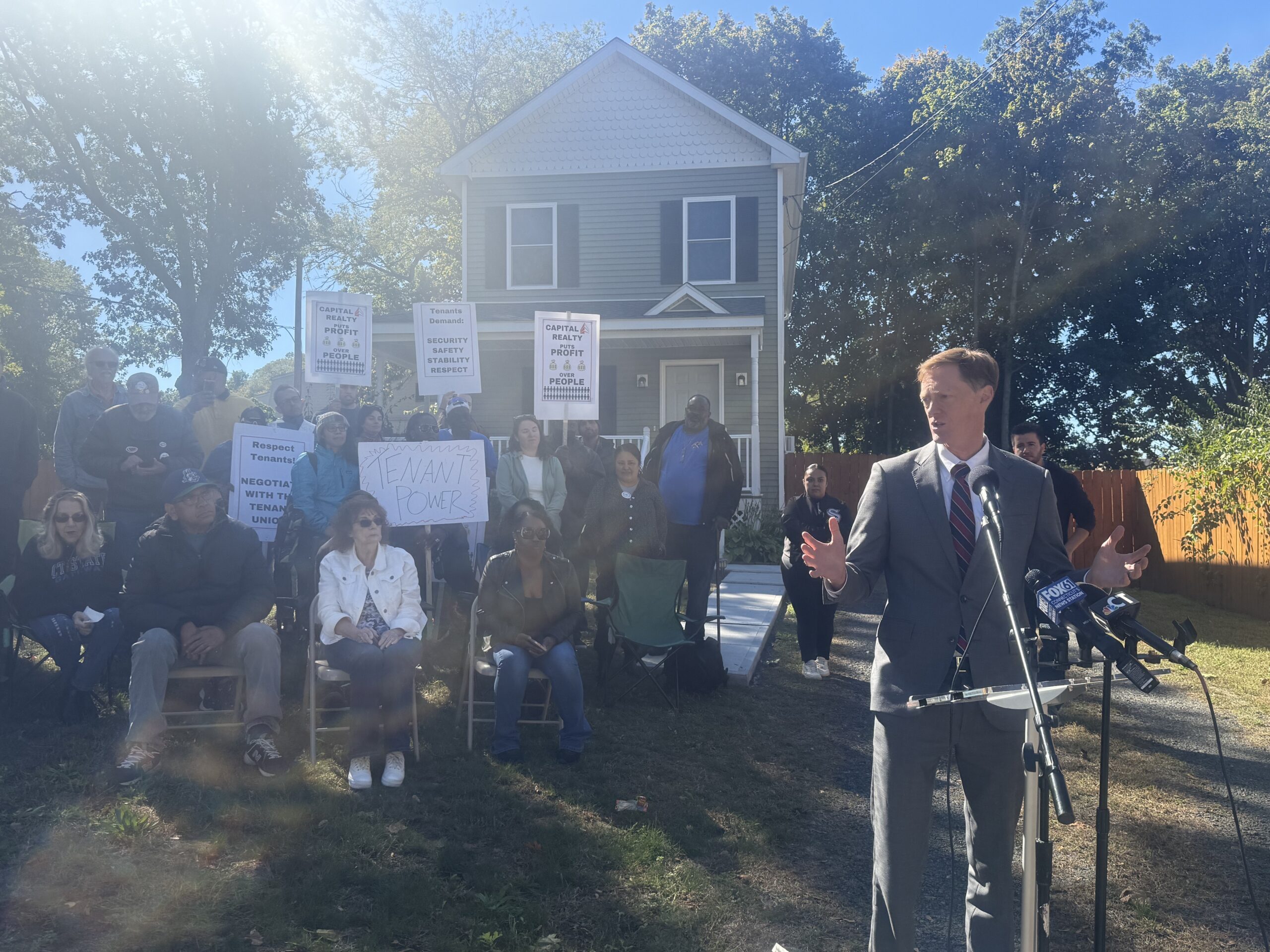 “I am proud to see the kind of energy and courage that tenants have to stand up and talk truth to power,” Mayor Justin Elicker said at the press conference. “To stand up and tell your story and not be intimated, that takes a lot of courage.”