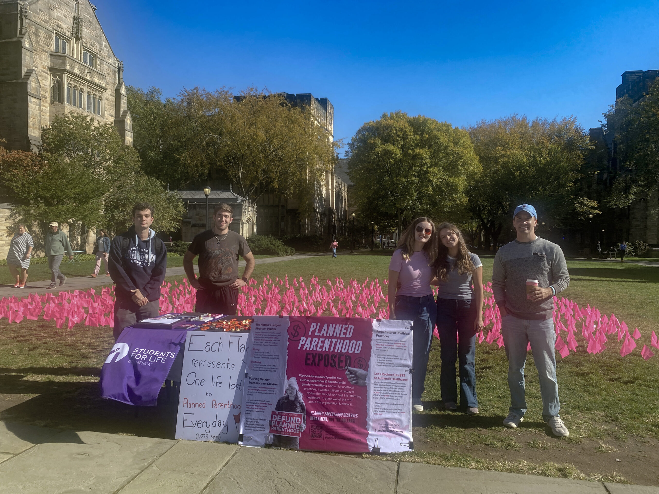 Volunteers for Choose Life at Yale, which describes itself as “Yale College’s Pro-Life Organization,” covered part of Cross Campus in bright pink flags Tuesday afternoon.