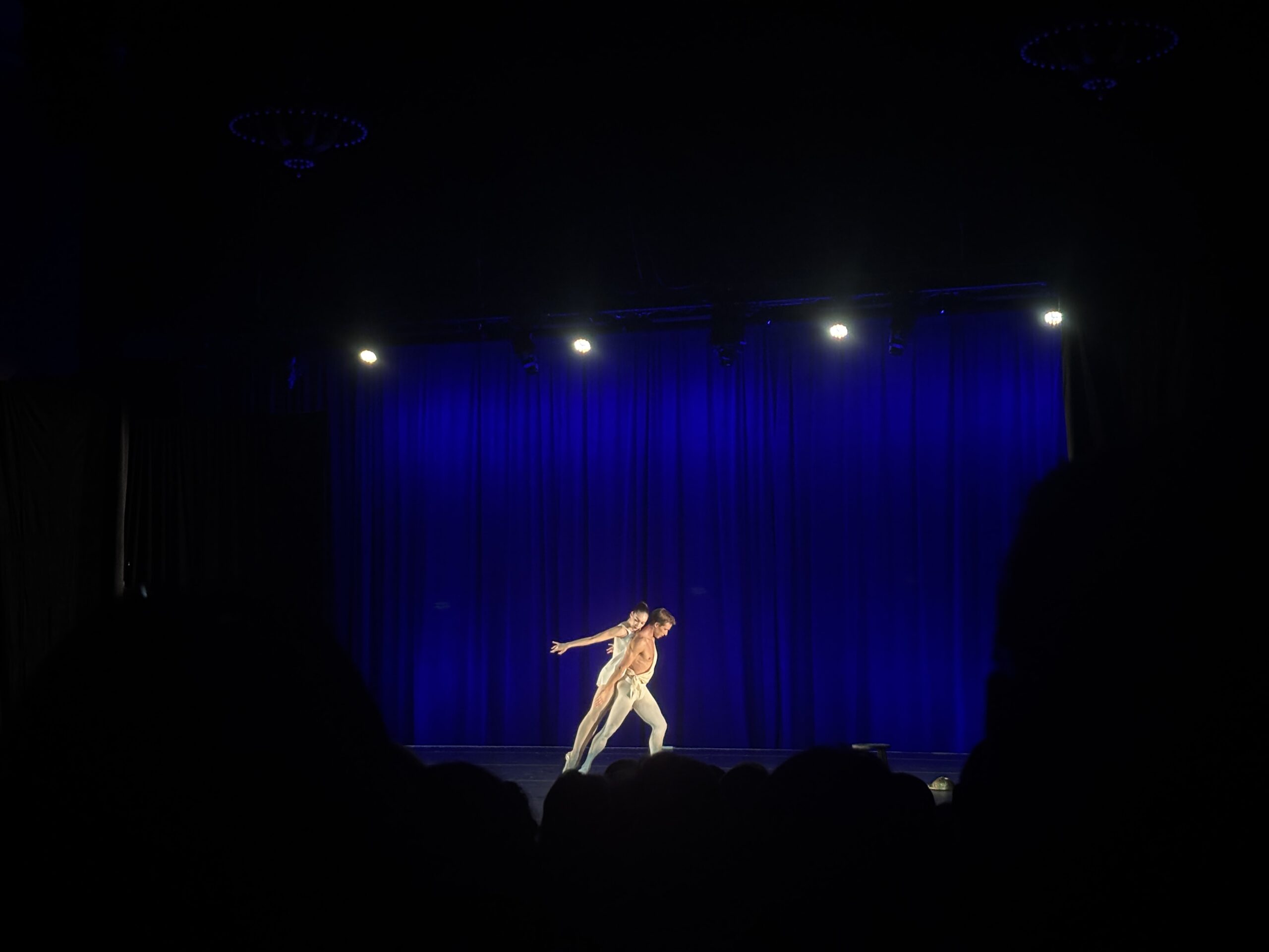 The usual tables of Commons were absent in the dining hall, which was transformed into a theater complete with curtains, a backdrop and a stage. The space was prepared to take the audience — seated on elevated platforms — through an artistic journey exploring the NYC Ballet’s rich, almost century-long history.