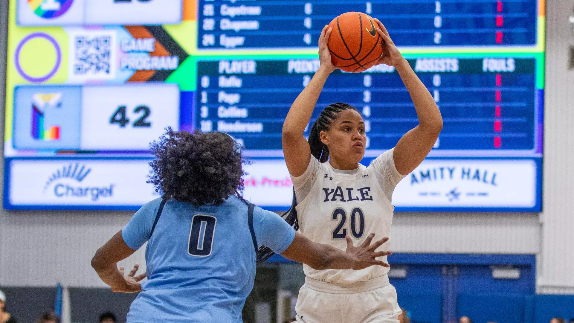 The Bulldogs’ first-year class includes three guards, Olivia Kim ’29, Hannah Wasserman ’29 and Radhika Garapaty ’29, and two forwards, Dorka Kastl ’29 and Sophia Gibson ’29, who are 6’2 and 6’4, respectively.