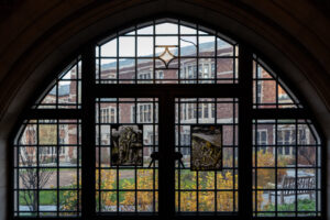 Lipstick sculpture back in Morse courtyard after restoration project
